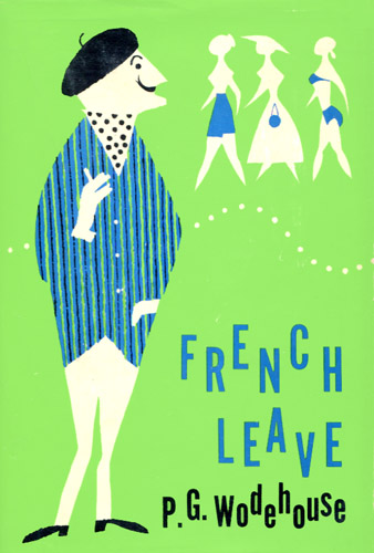 French Leave first appeared in a single-issue condensation in the Toronto Star Weekly, September 24, 1955, apparently based on an earlier stage of writing, with some differences in characters and plot elements. A four-part serial in John Bull, November 12 to December 3, 1955, is based on the UK text, but shortened with simple cuts. The UK first edition (left) was published by Herbert Jenkins, London, on January 20, 1956. It was reissued by Barrie and Jenkins in 1974 with a new preface by Wodehouse and with the text plates of the Jenkins first edition. The 1974 B&J edition was photo-reproduced for the 1992 Penguin paperback. Peter Schwed, Wodehouse’s editor at Simon & Schuster, didn’t like the novel on first reading in 1956 and, even when finally persuaded by its success in England, asked for some slight changes; the US book (right) was published by Simon & Schuster on 28 September 1959.