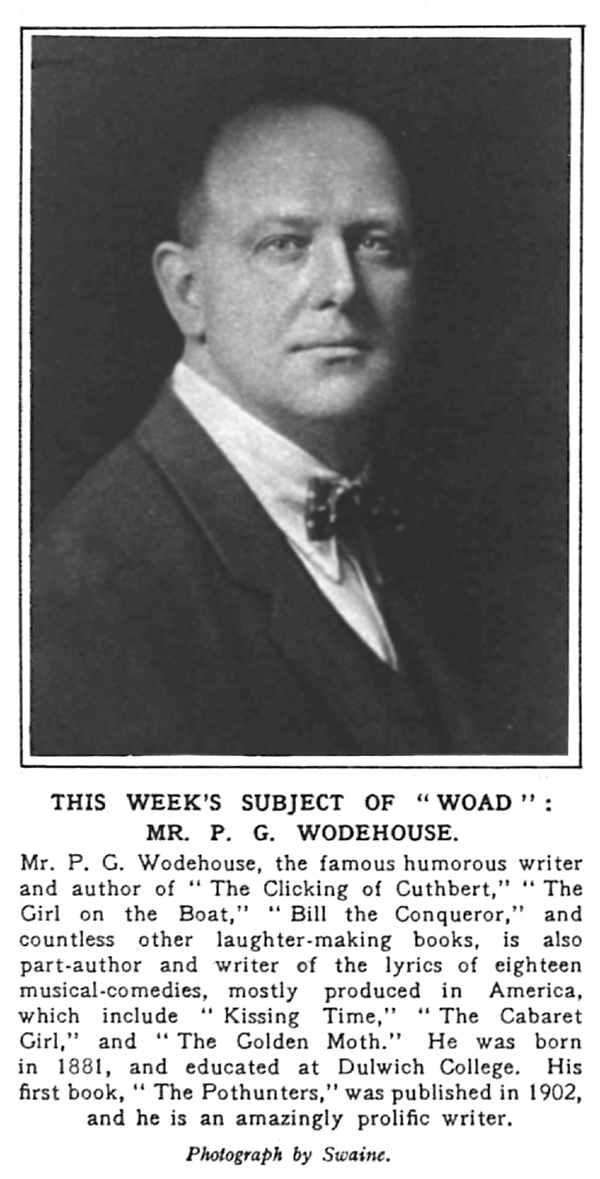 Beverley Nichols (1898–1983) was an English writer, critic, and playwright, noted as one of the “bright young things” of the 1920s. His early book Twenty-Five (1926) was favorably reviewed by Wodehouse, and that led to the interview reflected in the present article. Nichols expanded these biographical articles into a 1927 book titled Are They the Same at Home? (scan at Internet Archive, cued to the Wodehouse chapter). Barry Phelps in P. G. Wodehouse: Man and Myth and Robert McCrum in Wodehouse: A Life drew on this latter article to describe the relationship between Wodehouse and Nichols.