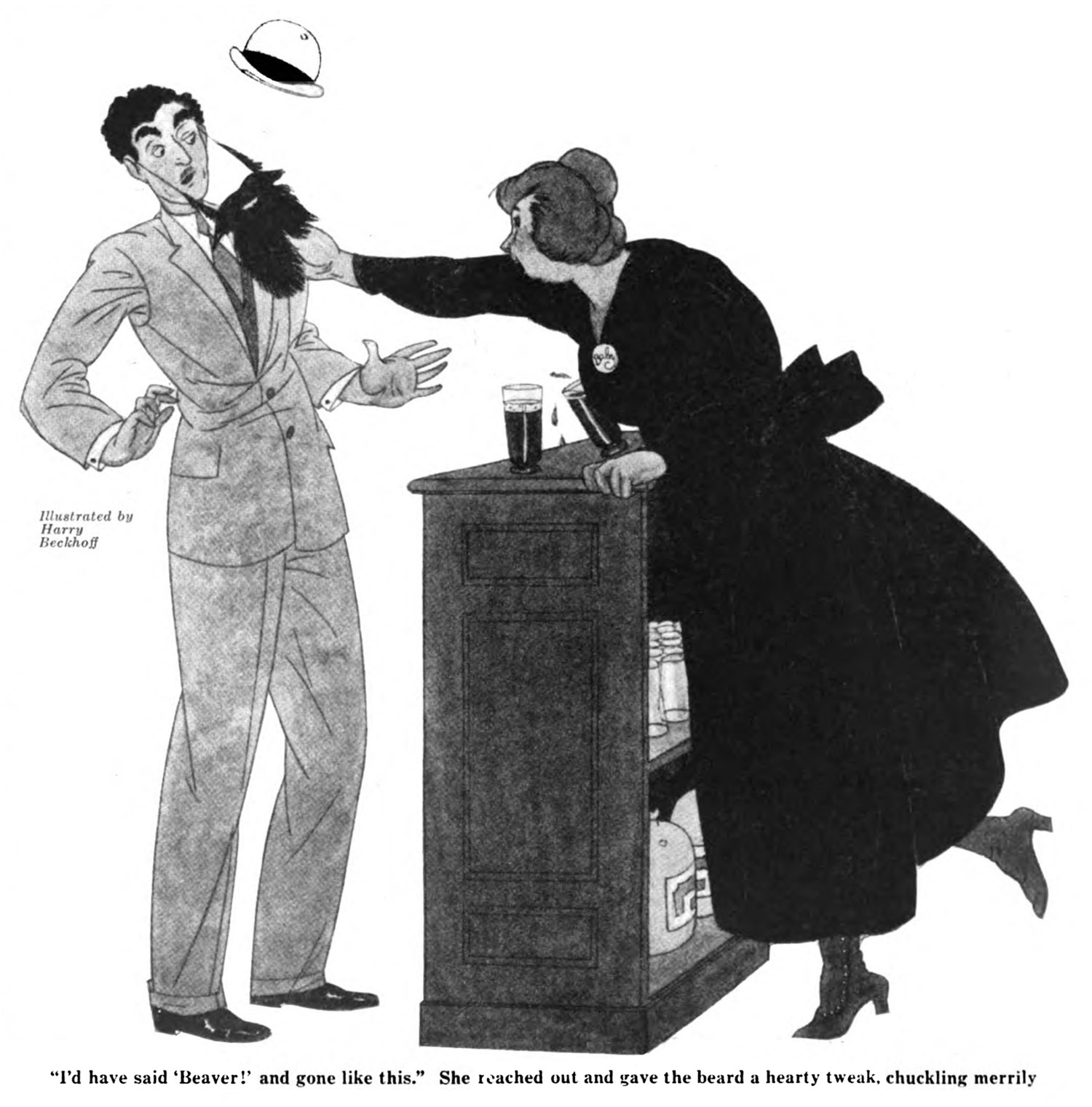 Cometh inspiration! Godfrey, Lord Biskerton, dons a huge beard. Is it an effective disguise? Can his enemies recognize him? To answer these vital questions, his lordship (and the beard) goes to the Berkeley, where the fair Ann and his father are lunching together. If Ann fails to spot him—behind the big bush—he is safe!