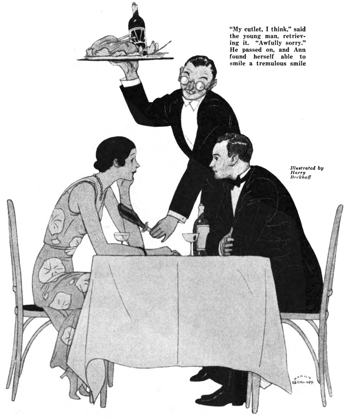 “My cutlet, I think,” said the young man, retrieving it. “Awfully sorry.”