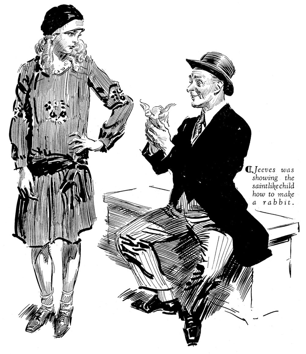 “It is an odd coincidence, Mr. Wooster,” said Miss Mapleton, becoming instantly matey once more as the outcast removed himself. “I had just finished writing a letter to your aunt when you arrived. I shall certainly reopen it to tell her how gallantly you have behaved tonight.