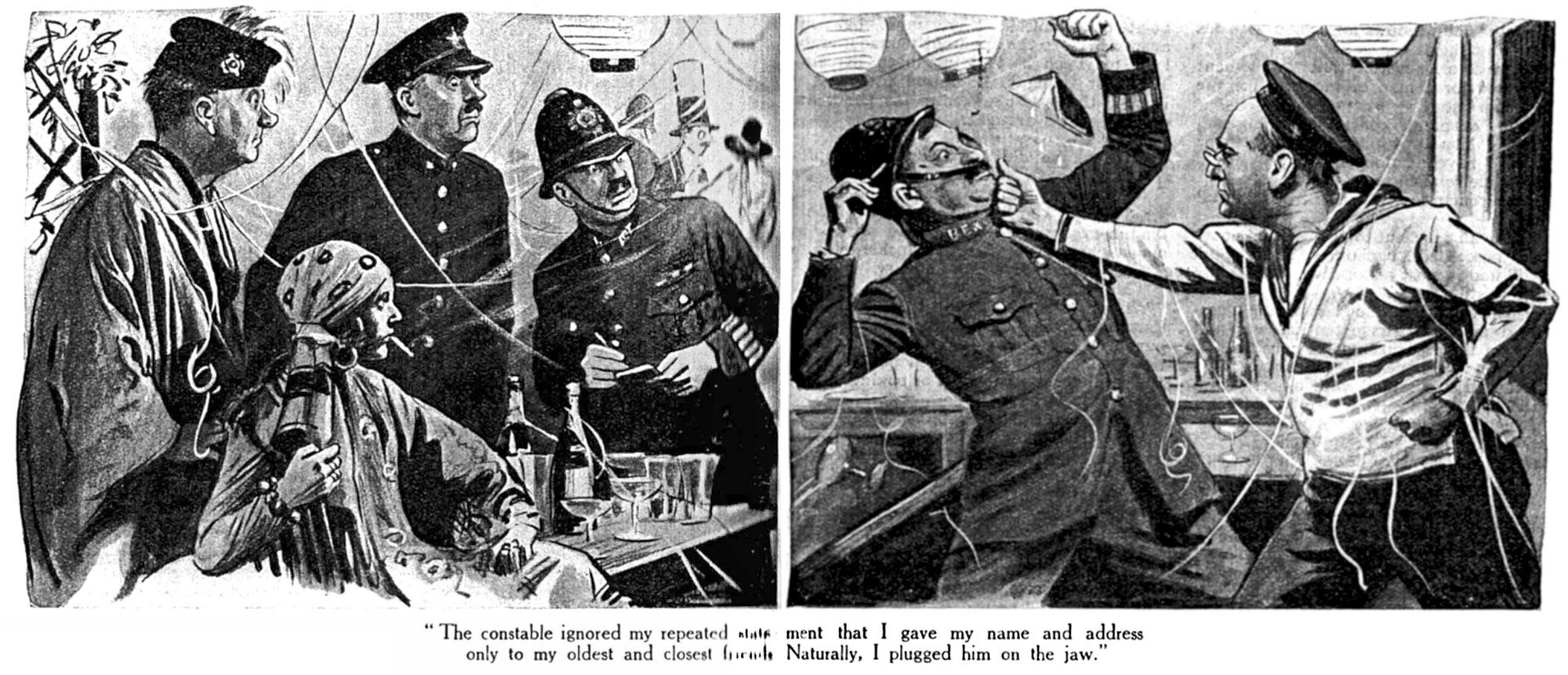 “I should say it does, sir. But,” he continued, a look of annoyance coming into his face, “what all the fuss was about is more than I can say. Our fat-headed Inspector says, ‘You go and raid that Home From Home, chaps, see?’ he says, and so we went and done it. But my heart wasn’t in it, no more was any of the other fellers’ hearts in it. What’s wrong with a little rational enjoyment? That’s what I say. What’s wrong with it?”