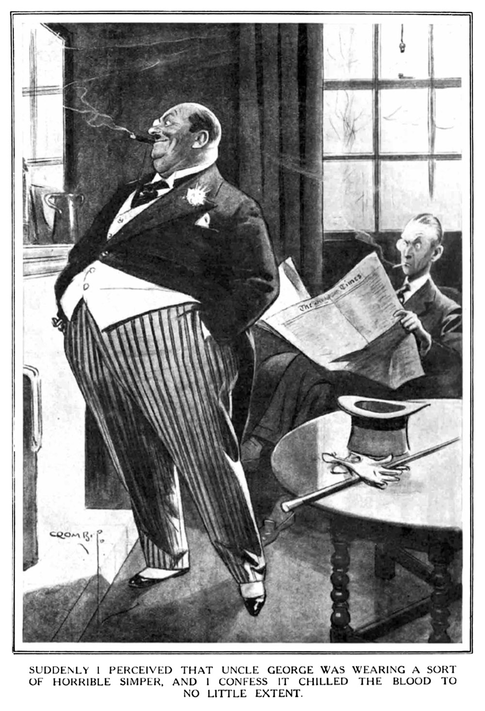 I mean to say, for years, right back to the time when I first went to Eton, this bulging relative had been one of the recognized eyesores of London. He was fat then, and day by day in every way has been getting fatter ever since, till now tailors measure him just for the sake of the exercise. He is what they call a prominent London clubman—one of those birds in tight morning coats and grey toppers whom you see toddling along St. James’s Street on fine afternoons, puffing a bit as they make the grade. Slip a ferret into any good club between Piccadilly and Pall Mall, and you would start half-a-dozen Uncle Georges.