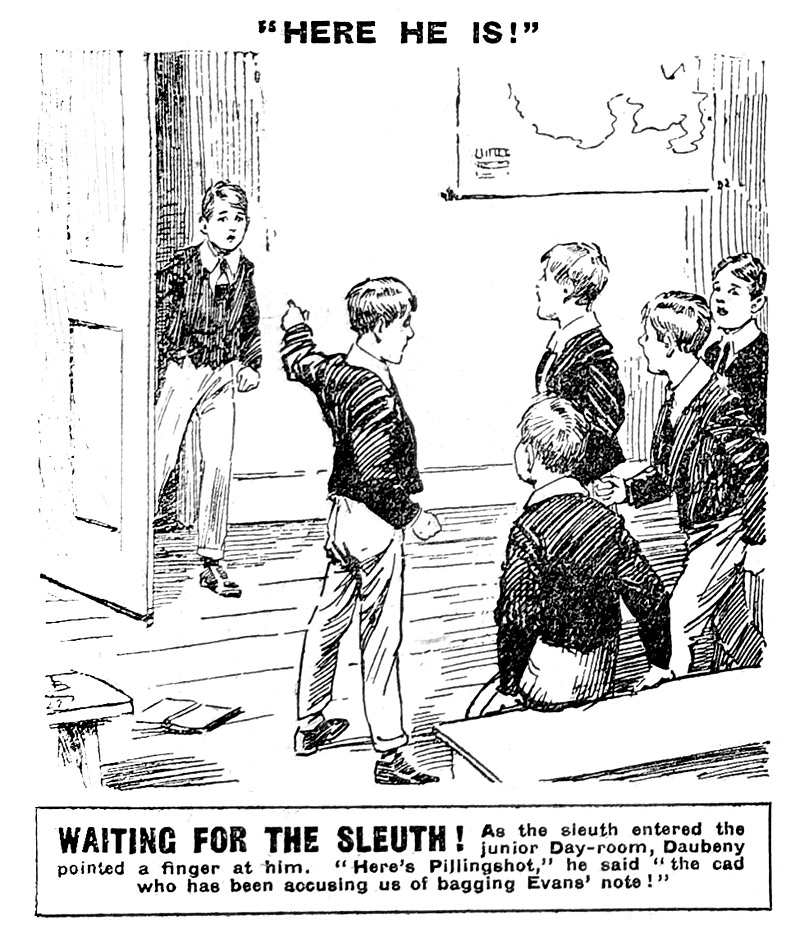 “I feel certain that’s your line. I’ve often noticed you walking over to school, looking exactly like a bloodhound. Get to work. As a start you’d better fetch Evans up here and question him.”