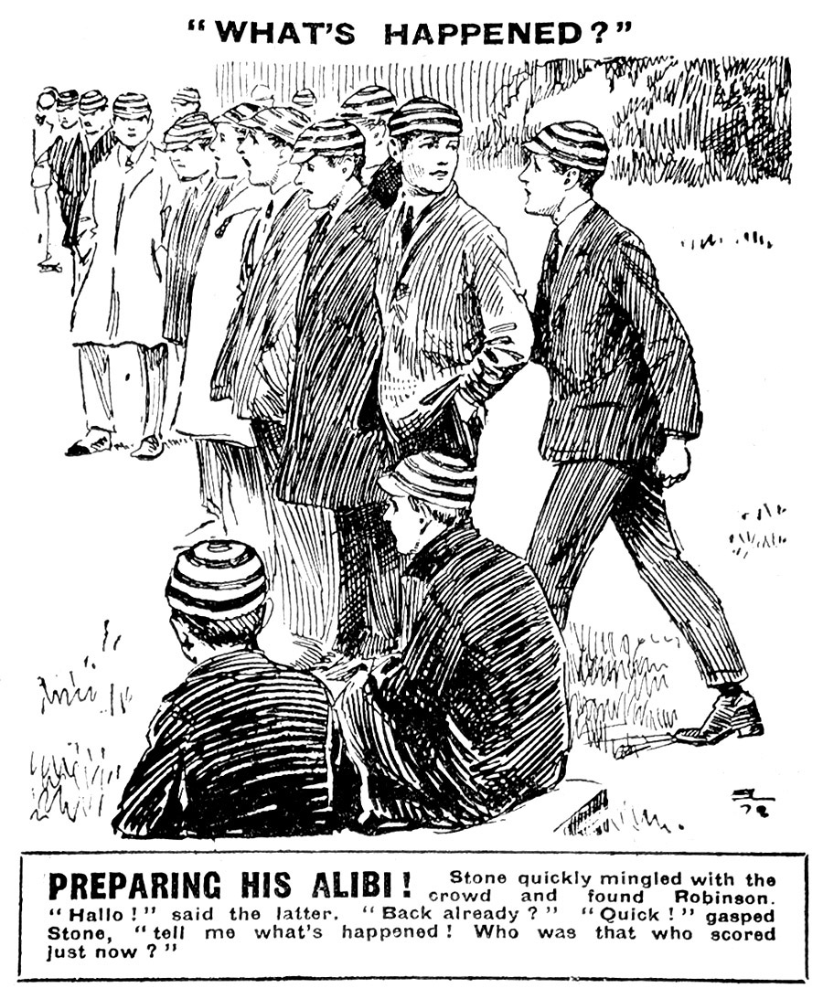 “And, fortunately, sir,” said Stone smoothly, “I happened to meet Mr. Downing just as the match finished. You can ask him, if you like, sir. We talked a lot about the match. I remember, now I come to think of it, how nearly the town scored in the first five minutes.”