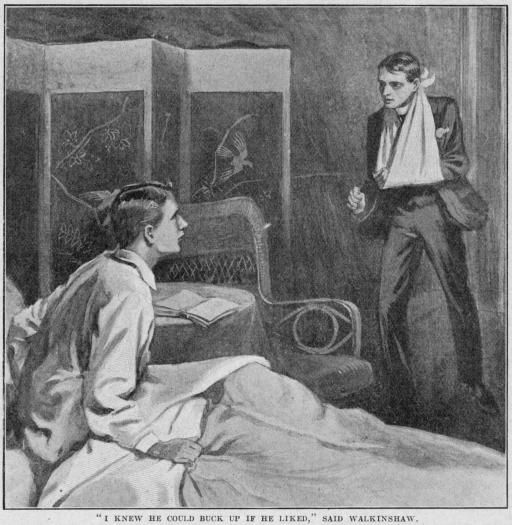 The first intimation Grey received of this came to him late in the evening. He had been reading a novel which, whatever its other merits may have been, was not interesting, and it had sent him to sleep. He awoke to hear a well-known voice observe with some unction: “Ah! M’yes. Leeches and hot fomentations.” This effectually banished sleep. If there were two things in the world that he loathed, they were leeches and hot fomentations, and the school doctor apparently regarded them as a panacea for every kind of bodily ailment, from a fractured skull to a cold in the head. It was this gentleman who had just spoken, but Grey’s alarm vanished as he perceived that the words had no personal application to himself. The object of the remark was a fellow-sufferer in the next bed but one. Now Grey was certain that when he had fallen asleep there had been nobody in that bed. When, therefore, the medical expert had departed on his fell errand, the quest of leeches and hot fomentations, he sat up and gave tongue.