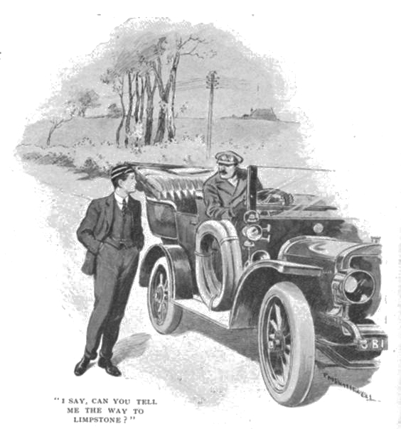 “I say,” he added tentatively, “I suppose you couldn’t—what I mean is, if you would let me hop into the car, I could show you the way. I’m going to Sedleigh, and it’s straight on from there to Limpstone.”