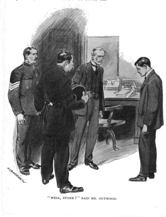 He went out. There were sounds of a murmured conversation in the passage. During the interval Sergeant Collard and Stone eyed one another in silence, the Sergeant with something of the Gorgon in his gaze, Stone all cheery friendliness. Presently Mr. Outwood came back.