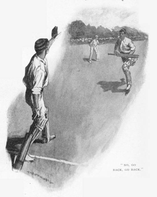 But Selwicke was already half-way up the pitch. Back came the ball, and off went the bails. The wicket-keeper looked a query at the umpire. The umpire’s hand went up, and Selwicke, white as a sheet, turned sharply off to the pavilion. There was a dead silence all round the ground.