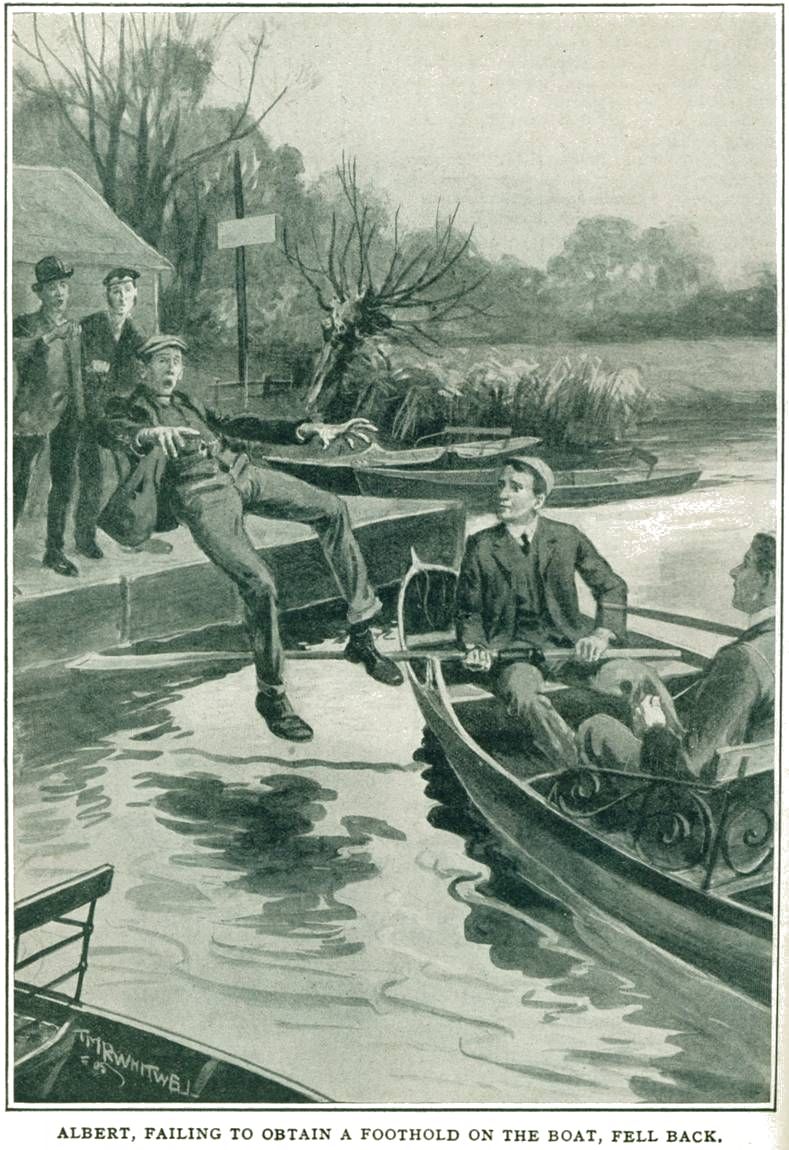 Mr. Smith proved more complaisant, and a quarter of an hour after Dunstable and Linton had disappeared, Albert and his friend were on the water. Moist outside, Albert burned within with a desire for Revenge. He meant to follow his men till he found them. It almost seemed as if there would be a repetition of the naval battle which had caused the town to be put out of bounds. Albert was a quick-tempered youth, and he had swallowed fully a pint of Severn water.