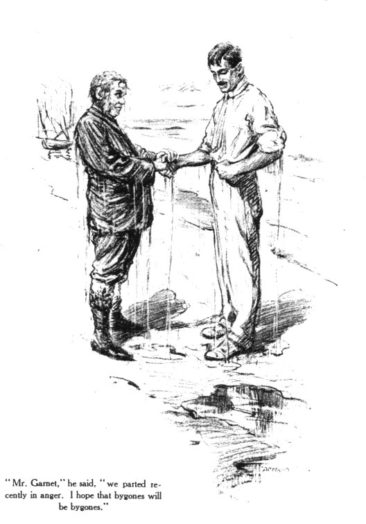 I went on to the Cob, where I sat down. I was excited. Deeds of great import must shortly be done. I felt a little nervous. It would never do to bungle the thing. Suppose by some accident I were to drown the professor! Or, suppose that, after all, he contented himself with a mere formal expression of thanks, and refused to let bygones be bygones. These things did not bear thinking of.