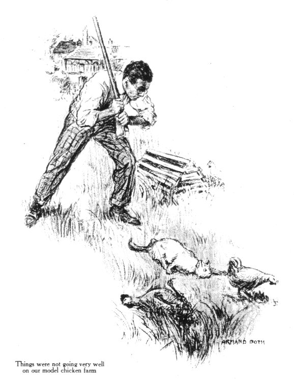 We had a long and intensely uninteresting conversation about the maladies to which chickens are subject. He was verbose and reminiscent. He took me over his farm, pointing out as we went Dorkings with pasts and Cochin Chinas which he had cured with, as far as I could gather, Christian Science principles.