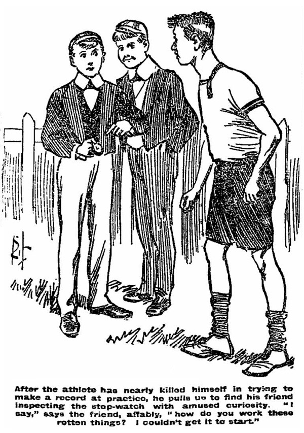 If it were not for the sports, there would be no getting through the term. There would be nothing to do after school but to prepare one’s work for the following day—an ignoble pursuit. But, with the sports in view, it is possible to take quite an interest in life. It is not necessary to be an expert on the track if one wishes to enjoy the process of training. Indeed, the expert, being too much in earnest, misses the subtler pleasures of the game.