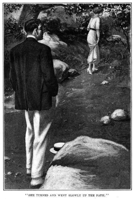 She turned and went slowly up the path. Still he made no movement. A spell seemed to be on him. His eyes never left her as she passed into the shadow of the trees. For a moment her white dress stood out clearly. She had stopped. With his whole soul he prayed that she would look back. And suddenly a strange weakness came upon John. He trembled. The hillside flickered before his eyes for an instant, and he clutched at the sandstone rock to steady himself.