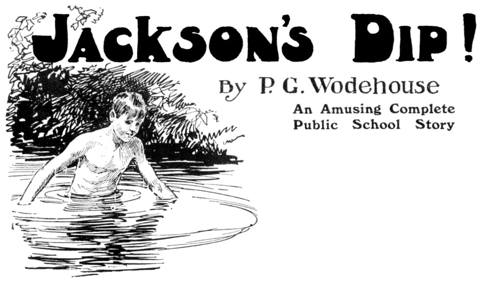 One of the features of Locksley School grounds was the pond. It was an idyllic spot, and the thought of it was maddening on an afternoon like this. This pond stood in the middle of a thick clump of trees at the pavilion end of the cricket-field. Its waters, though not deep—about four feet in the middle—were clear as crystal, owing to the fact that a stream ran through it to the river which divided the school from the town.