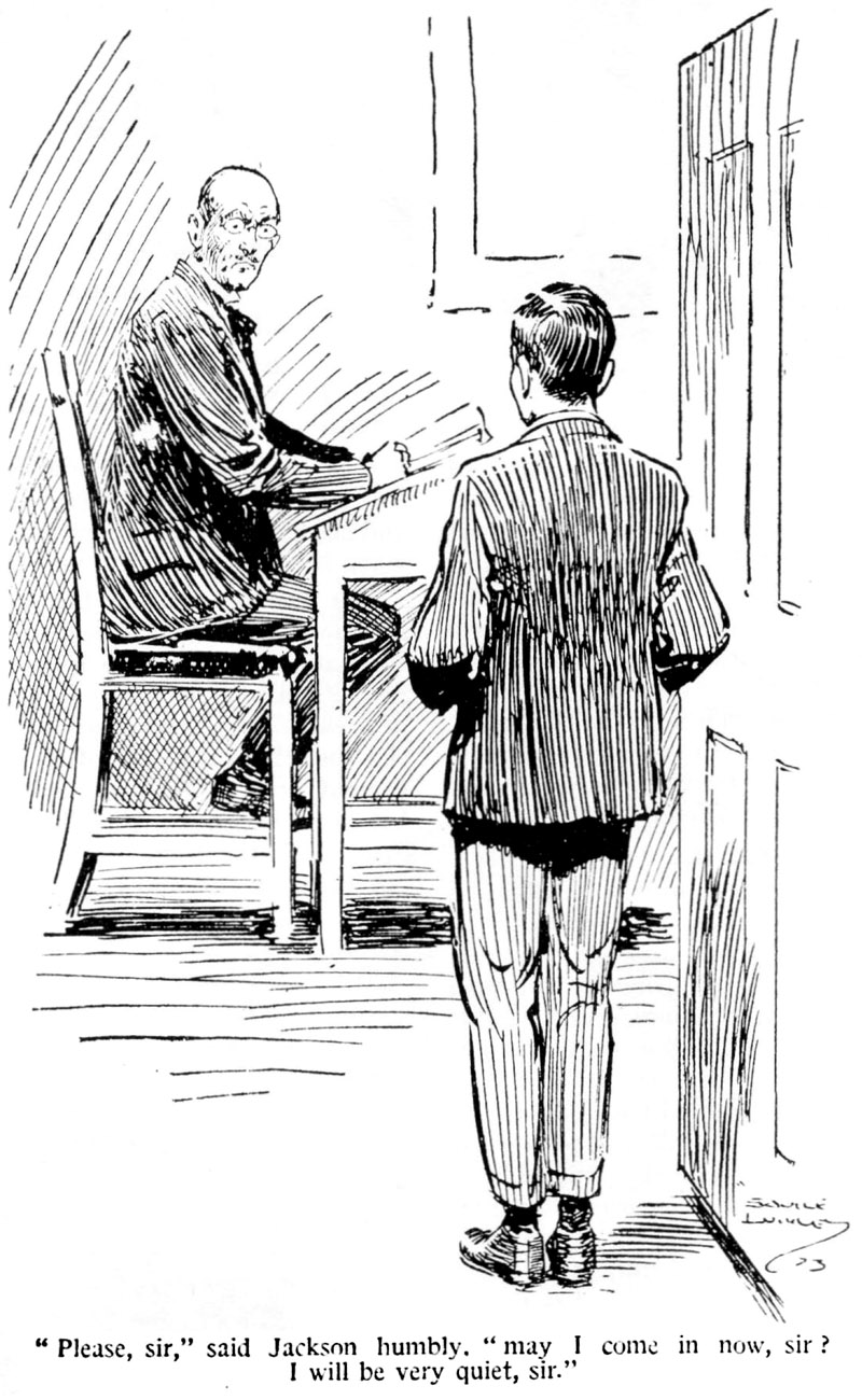 There are moments when the gamest man feels that there is nothing left to do but to throw up the sponge, Fate being too strong for him. That was how Jackson felt when he looked at the door which shut him out from the class-room. Anxious as he had been three-quarters of an hour before to get out, he was still more anxious now to get in.