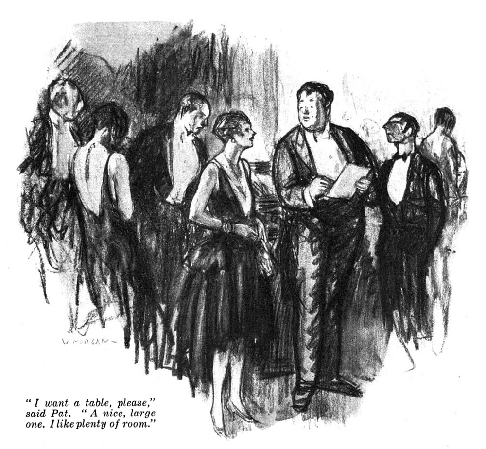 “I don’t,” said Pat with decision. “If you think I’m going to wait all night for old Hugo in a small lobby with six drafts whizzing through it, correct that impression. Go and find the head waiter and get a table while I leave my cloak. Back in a minute.”
