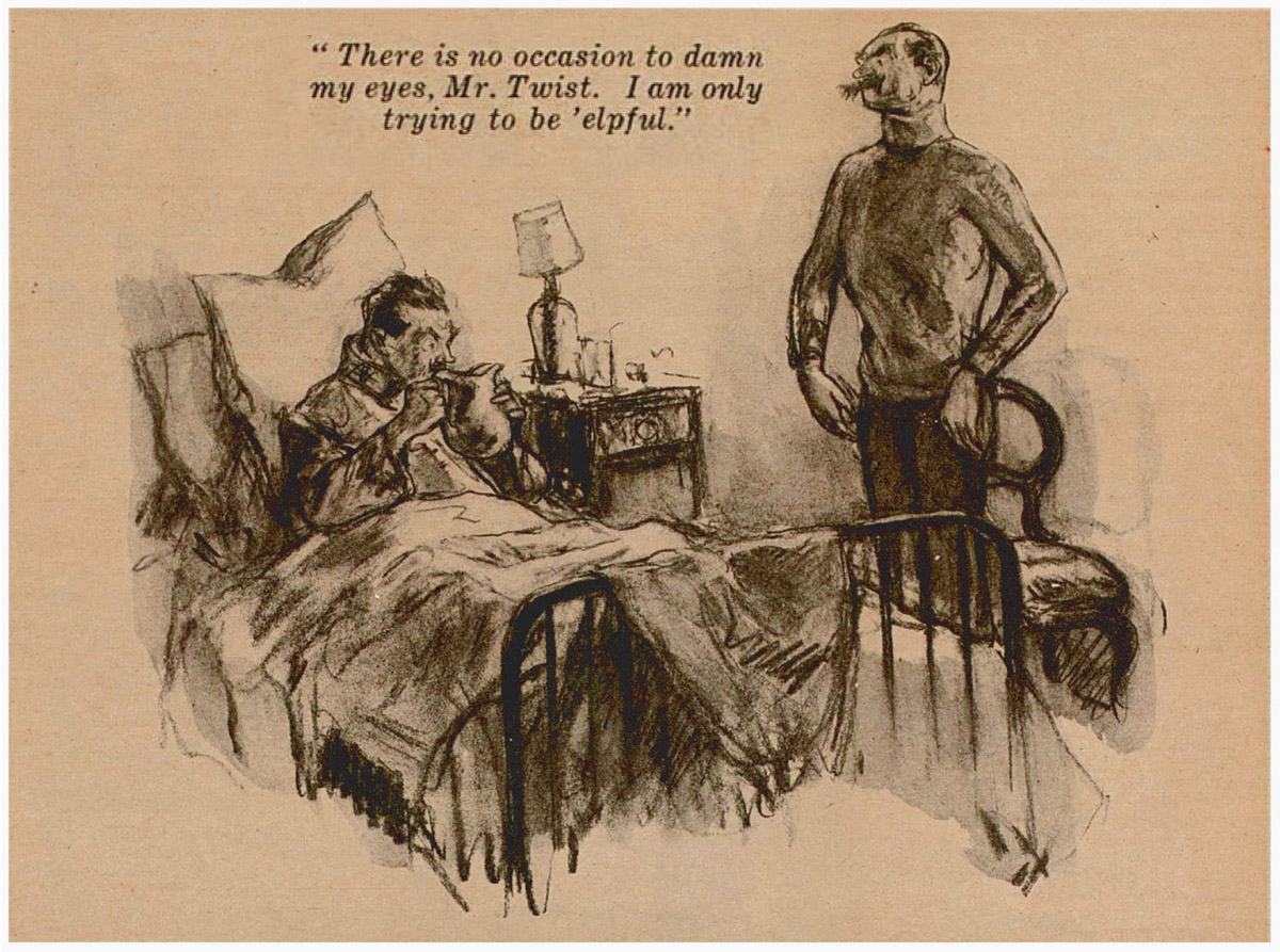 “There’s some say quinine, and some say a drop of camphor on a lump of sugar, and some say cinnamon; but, you can take it from me, the best thing for a nasty, feverish cold in the head is taraxacum and hops. There is no occasion to damn my eyes, Mr. Twist. I am only trying to be ’elpful. You send out for some taraxacum and hops, and before you know where you are—”