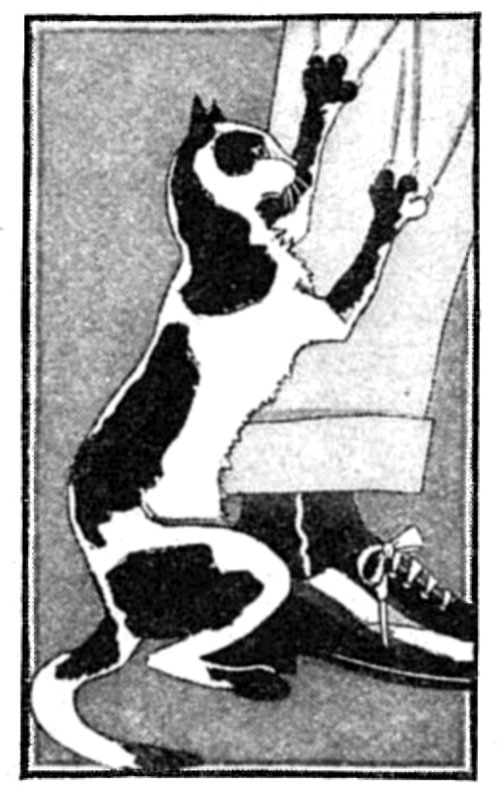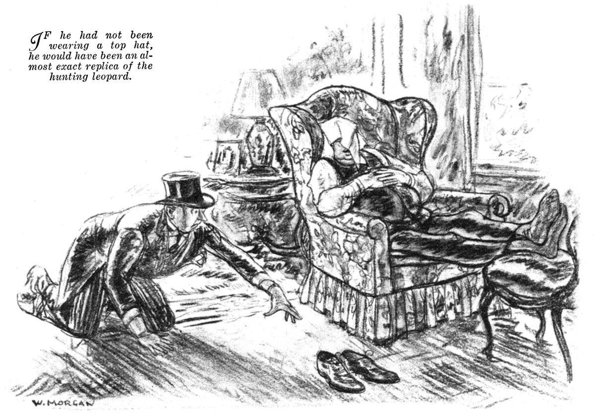 To the more meditative type of cat there comes at irregular intervals a strange, dreamy urge to stand on its hind legs and sharpen its claws on the nearest perpendicular object. This is usually a tree, but in the present case, there being no tree to hand, the ginger-coloured cat inside the room had made shift with Cedric’s right calf. Absently, its mind revolving who knows what abstruse subjects, it blinked once or twice; then, rising, got its claws well into the flesh and pulled them down with a slow, lingering motion.