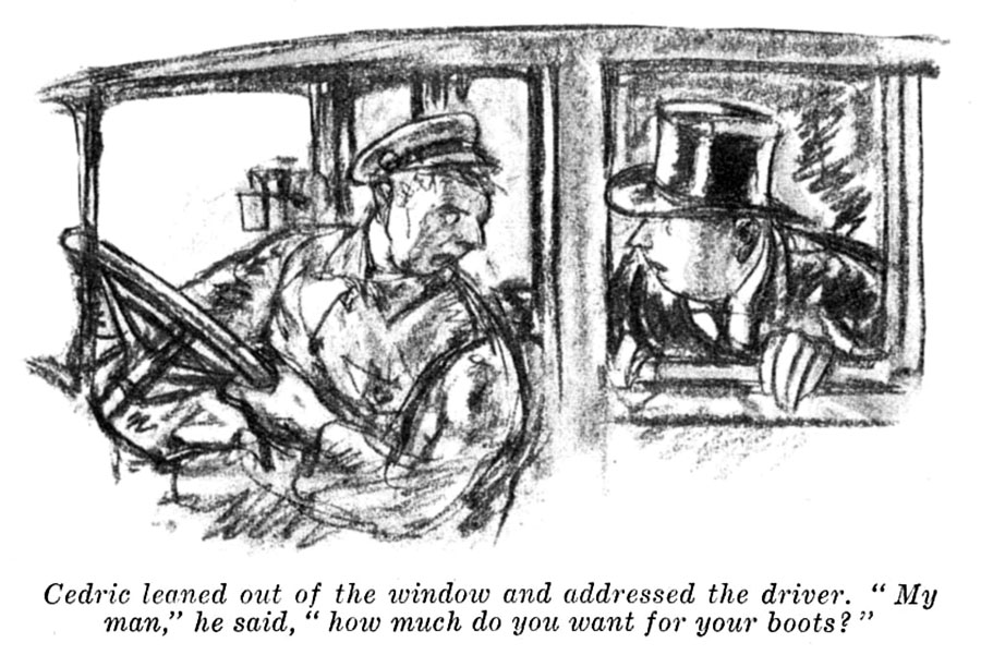 “It is my dearest wish,” said Cedric in a low, steady voice, “and if somebody will kindly lift this window off my neck and kick this beastly cat or something which keeps clawing my leg, we can all get together and talk it over.”