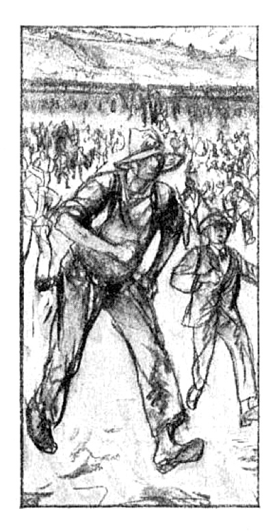 Nevertheless it is not to be questioned that he made good going. And he had need to; for, after the first instant of surprise that had enabled him to secure a lead, the whole mob was pouring across country after him, and dimly, as he ran, he could hear voices in the throng informally discussing the advisability of lynching him. Moreover, the field through which he was running, a moment before a bare expanse of green, was now black with figures, headed by a man with a beard, who carried a pitchfork.