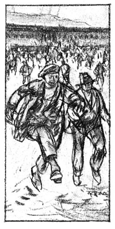It was about a mile and a half from East Wobsley that the affair had taken place, and as far as the eye could reach the countryside was totally devoid of humanity. A moment before nothing had been visible but smiling cornfields and broad pasture lands; but now from east, west, north, and south running figures began to appear.