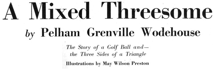 AND Betty, meanwhile? She, poor child, stared down the years into a bleak future, in which she saw herself parted forever from the man she loved and the golf-widow of another for whom—even when he won a medal for lowest net at a weekly handicap with a score of a hundred-and-twenty-three minus forty-six—she could feel nothing warmer than respect. Those were dreary days for Betty. We three—she and I and Eddie Denton—often talked over Mortimer’s strange obsession. Denton said that, except that Mortimer had not come out in pink spots, his symptoms were almost identical with those of the dreaded mongo-mongo, the scourge of the West African hinterland. Poor Denton! He had already booked his passage for Africa, and spent hours looking in the atlas for good deserts.