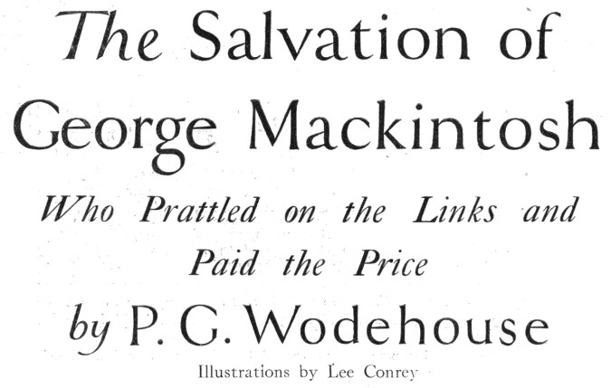 I was reading my Braid on the Push-Shot one night after dinner, when George Mackintosh came in. I could see at once that there was something on his mind, but what this could be I was at a loss to imagine, for I had been playing with him myself all the afternoon and he had done an eighty-one and a seventy-nine. And, as I had not left the links till dusk was beginning to fall, it was practically impossible that he could have gone out again and done badly. The idea of financial trouble seemed equally out of the question. George had a good job with the old-established legal firm of Peabody, Peabody, Peabody, Peabody, Cootes, Toots, and Peabody. The third alternative, that he might be in love, I rejected at once. In all the time I had known him, I had never seen a sign that George Mackintosh gave a thought to the opposite sex.