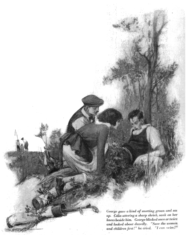 On the way to the second tee George discoursed on the beauties of Nature, pointing out at considerable length how exquisitely the silver glitter of the lake harmonized with the vivid emerald turf near the hole and the duller green of the rough beyond it. As Celia teed up her ball, he directed her attention to the golden glory of the sand-pit to the left of the flag. It was not the spirit in which to approach the lake-hole, and I was not surprised when the unfortunate girl’s ball fell with a sickening plop half-way across the water.