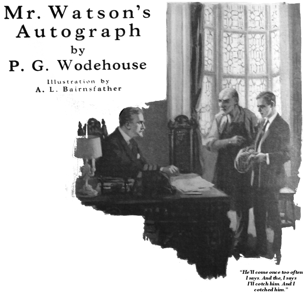 And there would be trouble. For Watson was notoriously a foe to the autograph-hunter. His curt, type-written replies (signed by a secretary) had damped the ardour of scores of brave men and—more or less—fair women. A genuine Wadsworth Watson was a prize in the autograph market.