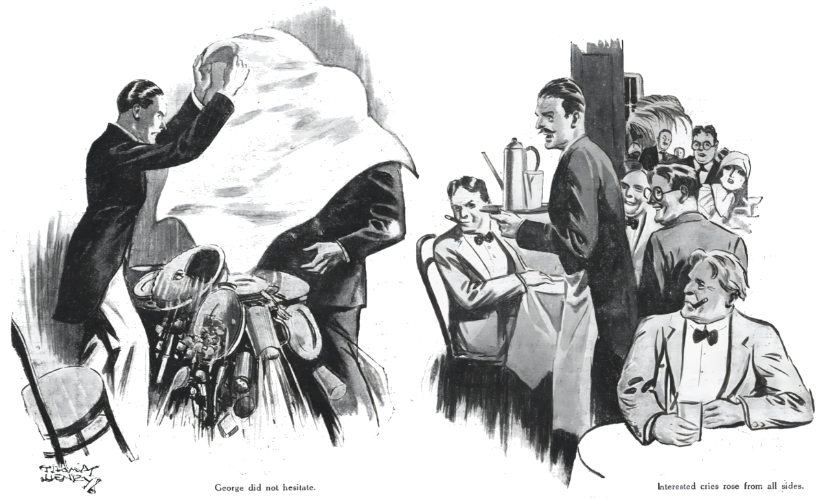 Now, when a man is so hard put to it for mental occupation that he has to fall back on Sigsbee H. Waddington as a topic of thought, he is nearing the end of his resources, and it was possibly with a kindly appreciation of this fact that Fate now supplied something else to occupy George’s mind. Musing idly on Sigsbee H. and wondering how he got that way, George became suddenly aware of approaching footsteps.