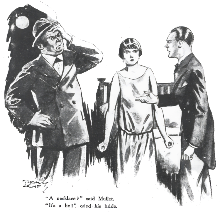 “Will you?” said George unpleasantly. “Let me tell you there’s a little matter to be settled before you start going to any hotel. Perhaps you are not aware that your wife is in possession of a valuable necklace belonging to the lady who, if it hadn’t been for her, would now be Mrs. George Finch?”