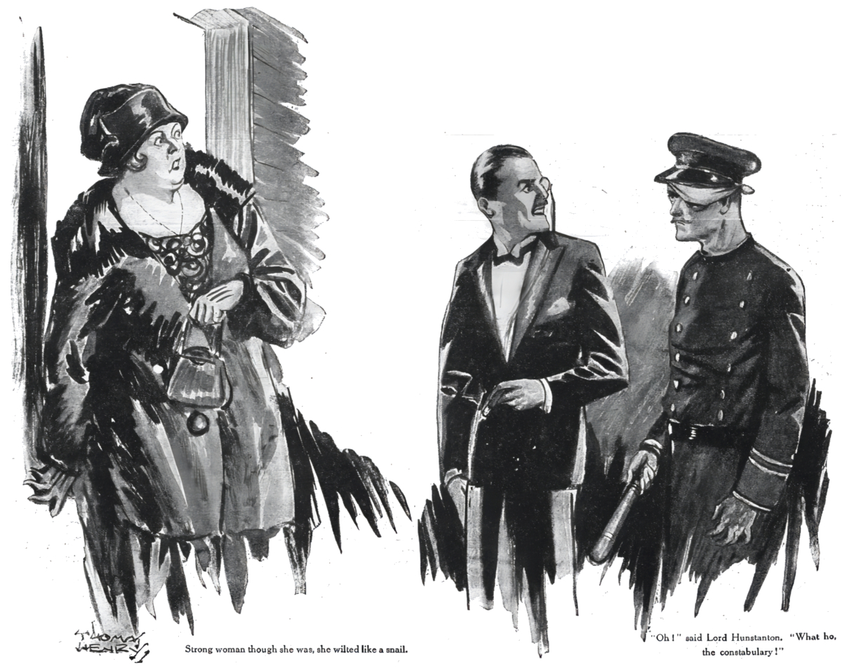 There followed one of those pauses which so often punctuate the conversation of comparative strangers. Officer Garroway seemed to have said his say. Mrs. Waddington had no observations to make. And, though Lord Hunstanton would have liked to put a question or two, the spectacle of that oscillating night-stick had the effect of driving the words out of his head. It was the sort of night-stick that gave one a throbbing feeling about the temples merely to look at it. He swallowed feebly, but made no remark.