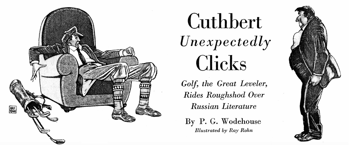 “And so” (concluded the Oldest Member) “you see that Golf can be of the greatest practical assistance to a man in life’s struggle. Raymond Parsloe Devine, who was no player, had to move out of the neighborhood immediately, and is now, I believe, writing scenarios out in California for the Flicker Film Company. Adeline is married to Cuthbert, and it was only his earnest pleading which prevented her from having their eldest son christened Jock Hutchison Rib-Faced Mashie Banks, for she is now as keen a devotee of the great game as her husband. Those who know them say that theirs is a union so devoted, so. . . .”