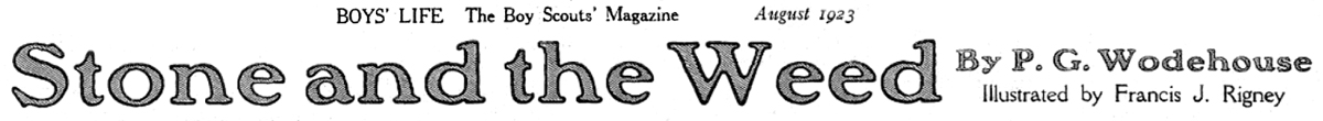 This story originally appeared in The Captain, May 1910, in the UK. Many spellings and some punctuation and capitalization were Americanized for this appearance in the official magazine of the Boy Scouts of America, but very few substantial changes were made. One wonders how many American Scouts were familiar with British public-school terminology, as this assumes them to be. In any event, Boys’ Life reprinted the story in March 1936 and March 1971.