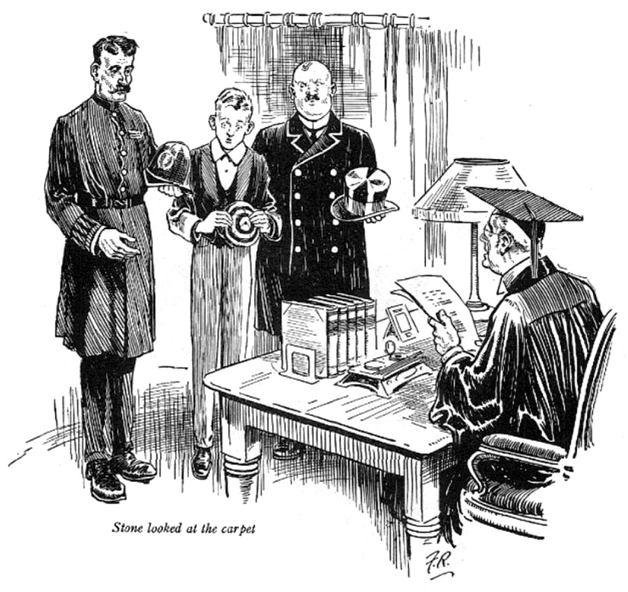 JUST before tea, as he expected, he was summoned to Mr. Outwood’s study. It was quite a small party. Sergeant Collard was there, looking stout and important, but no other representatives of the Sedleigh Smart Set were present.