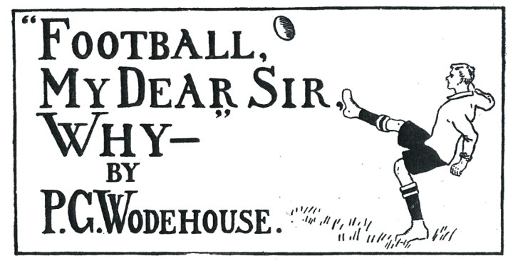 Football is essentially an undignified game, and can never be to the artist soul quite what cricket is. The best part of cricket is, undoubtedly, sitting in the pavilion and watching the game. In football you miss this. The football spectator is a wretched being, lashed by the rain and the sport of the wind, and frozen into one solid mass from the feet upwards. He cannot take that calm, restful interest in the play which makes the lot of the cricket spectator so pleasant. He is given to understand that the only way in which he may help his side to victory is by shouting, and without a stop at that. Often after a school match the actual players are as fresh as paint compared to the spectators, who go home feeling that any remarks they may wish to make for the next week or so must be made in guttural croaks eked out with dumb show. Mr. W. S. Gilbert has drawn a vivid picture of the difficulties experienced by a curate when he had to explain in dumb show to his deaf housekeeper that his aunt in Spain had sent him a cask of Amontillado, which the wine merchant had presented to her in exchange for the temporary use of two rooms on the second floor; but it is scarcely less easy to explain to one’s form master on the morning after a match that you have not done your work because you didn’t feel well last night and you thought he had not set any and you didn’t know where it started and you left your book at school by mistake. It is almost simpler to leave the thing alone.