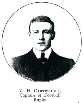 The Rugby team of 1900-1 was probably the strongest school side there has been for many years. With four old colours, V. H. Cartwright (the captain), F. W. Bolton, H. D. Lloyd, and F. C. M. Cruickshank, and a pack of forwards averaging twelve stone three, they were decidedly a team one would rather meet at ping-pong or dominoes than on the football field. Out of the ten matches played, eight were won, including the only two school matches, Cheltenham and Uppingham. Against the former, Rugby scored nine times (29 points to 8), while the latter match ended in an extraordinary walk-over, for the Rugbeians ran up 58 points to nil, crossing their opponents’ line seventeen times. A wonderful score this,—in a school match especially.