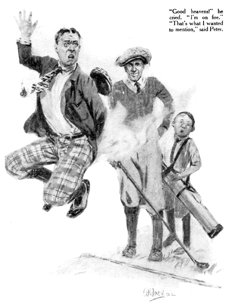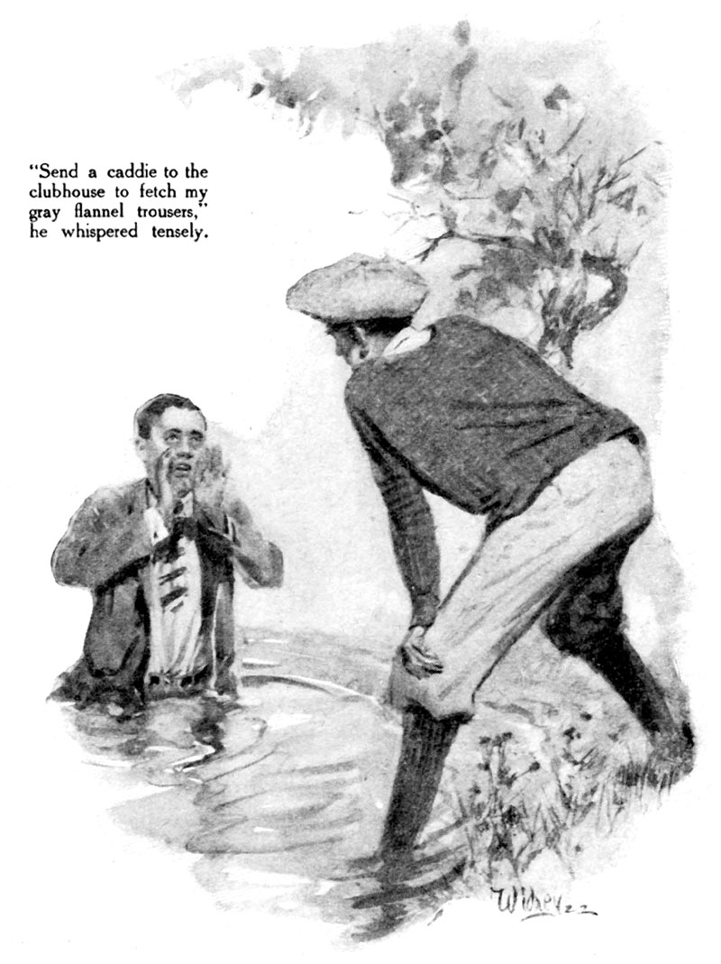 “Never mind!” said Wallace austerely. He bent as near to Peter as he was able. “Send a caddie up to the clubhouse to fetch my gray flannel trousers from my locker,” he whispered, tensely.