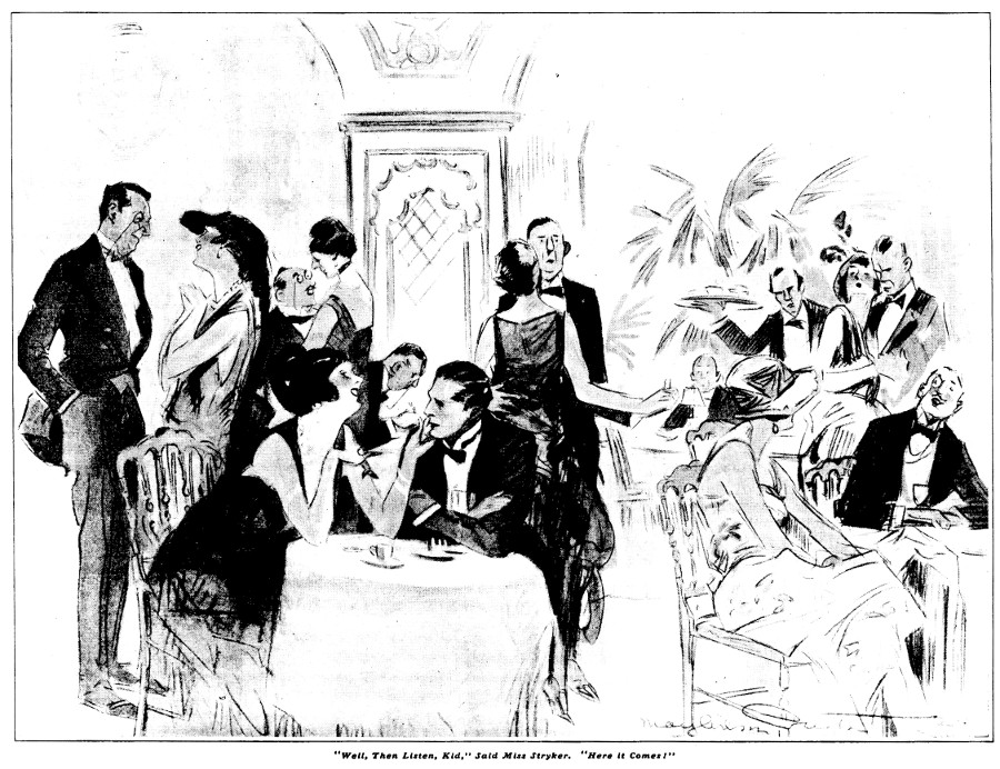 “Flickie,” said Mr. Hammond, “we’re a couple of reckless young fellows out for a good time. How would you like to come and have dinner somewhere—somewhere low and vulgar? Let’s go to one of those Night Clubs Which are Living Hells that Society Spice writes about.”