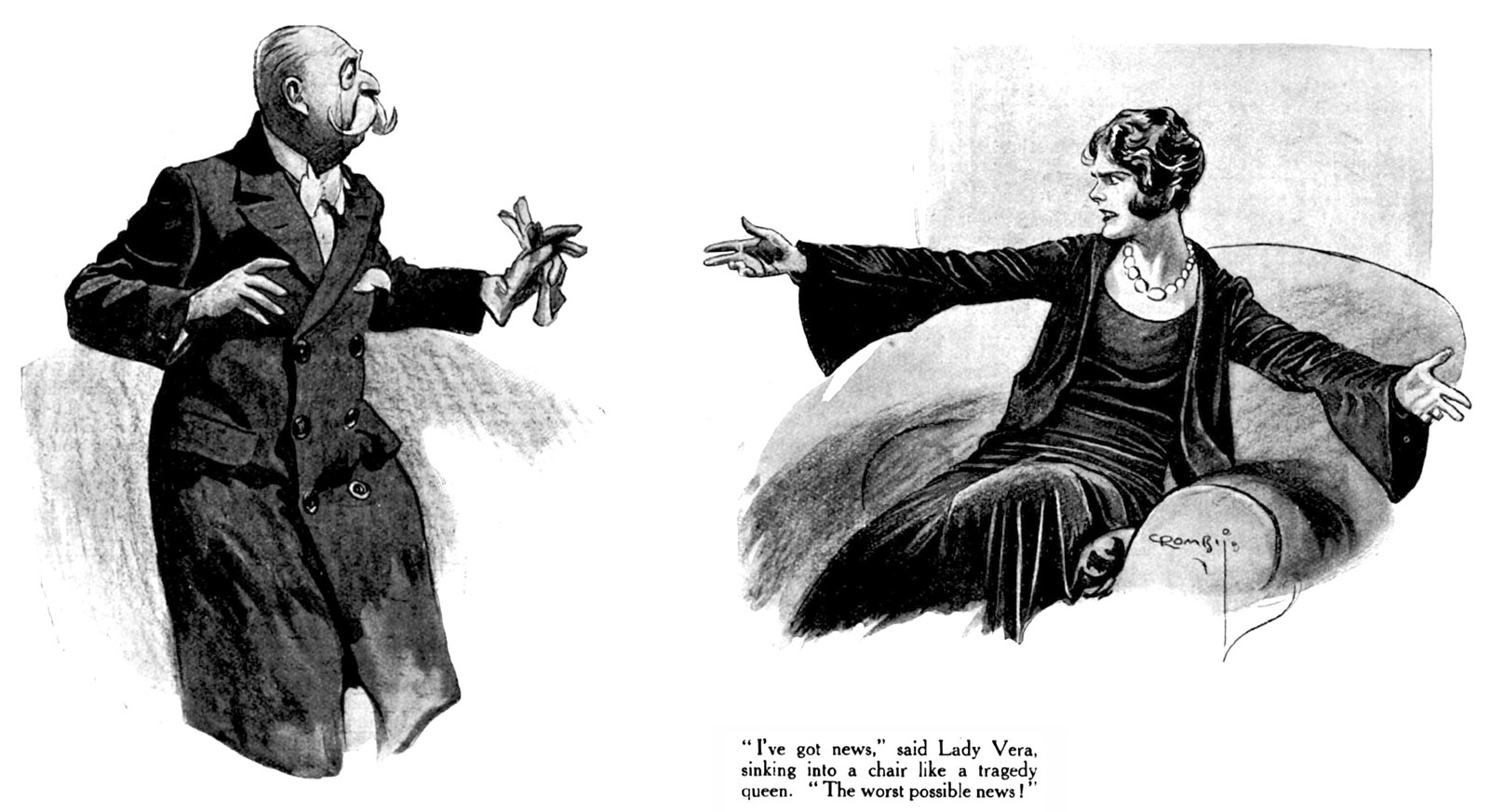 “What you don’t realize, dear,” proceeded Lady Vera, gently, “is that you are a very well-known girl. Your photograph has been in all the weekly papers. You have been seen about everywhere. There are a dozen ways in which this man could have got to know you by sight. Obviously, he must have marked you down; and when he saw you in your car that day he seized his opportunity. He knew how it would appeal to an imaginative girl, a man jumping in beside her and asking her to help him pursue a criminal. He knew that you are the daughter of a very rich man——”