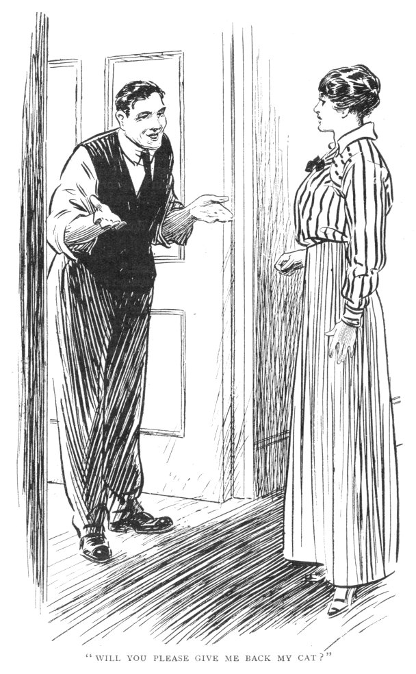 “Would you mind letting me have my cat, please?” she said, pleasantly. “He has gone into your sitting-room through the window.”