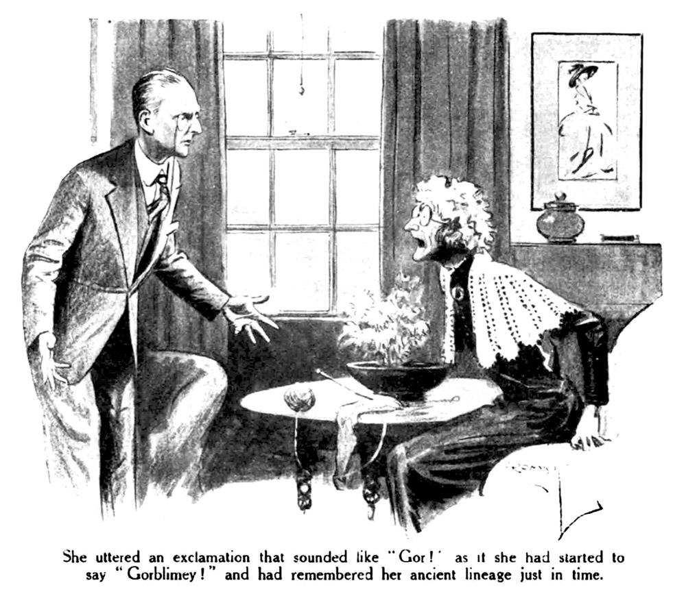 “Yes, sir. The expression is one which I would, of course, not have ventured to employ myself, but I confess to thinking his lordship somewhat ill-advised. One must remember, however, that it is not unusual to find gentlemen of a certain age yielding to what might be described as a sentimental urge. They appear to experience what I may term a sort of Indian Summer, a kind of temporarily renewed youth. The phenomenon is particularly noticeable, I am given to understand, in the United States of America among the wealthier inhabitants of the city of Pittsburg. It is notorious, I am told, that sooner or later, unless restrained, they always endeavour to marry chorus girls. Why this should be so, I am at a loss to say, but——”
