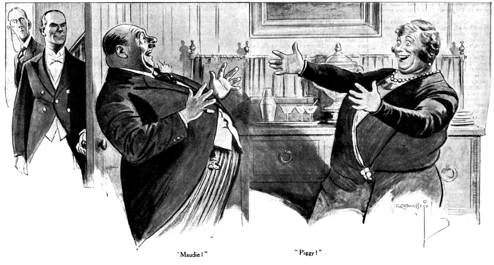 And so it was. Jeeves let him in, and I followed him as he navigated down the passage to the sitting-room. There was a stunned silence as he went in, and then a couple of the startled yelps you hear when old buddies get together after long separation.