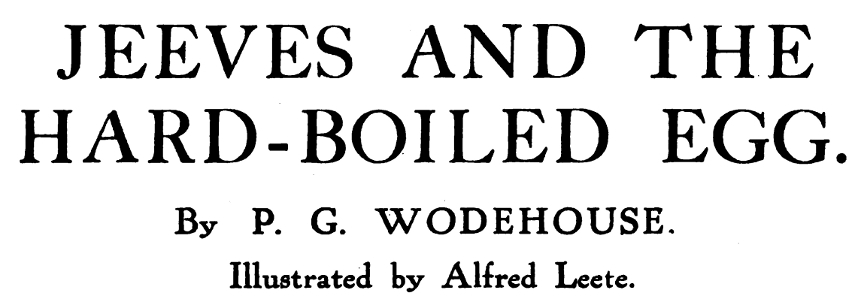 I rely on him absolutely in every crisis, and he never lets me down. And, what’s more, he can always be counted on to extend himself on behalf of any pal of mine who happens to be to all appearances knee-deep in the bouillon. Take the rather rummy case, for instance, of dear old Bicky and his uncle, the hard-boiled egg.