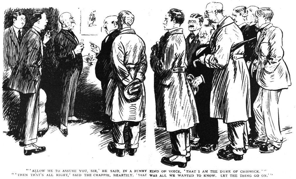 “Allow me to assure you, sir,” he said, in a rummy kind of voice, “that I am the Duke of Chiswick.”