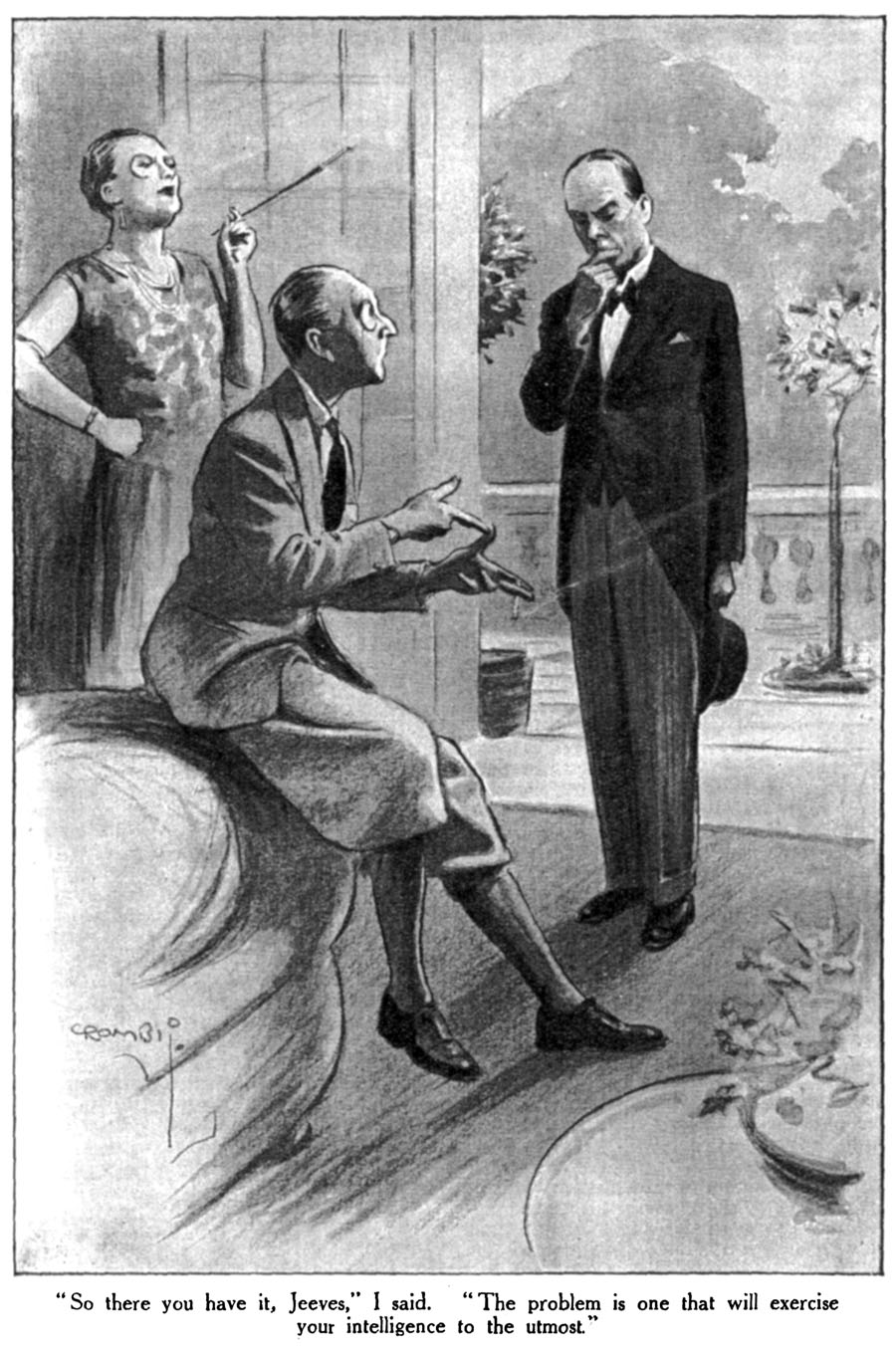 I WAS brooding pretty tensely as I left the presence. I have always had a suspicion that Aunt Dahlia, while invariably matey and bonhomous and seeming to take pleasure in my society, has a lower opinion of my intelligence than I quite like. Too often it is her practice to address me as fathead, and if I put forward any little thought or idea or fancy in her hearing it is apt to be greeted with the affectionate but jarring guffaw. In our recent interview she had hinted quite plainly that she considered me negligible in a crisis which, like the present one, called for initiative and resource. It was my intention to show her how greatly she had underestimated me.