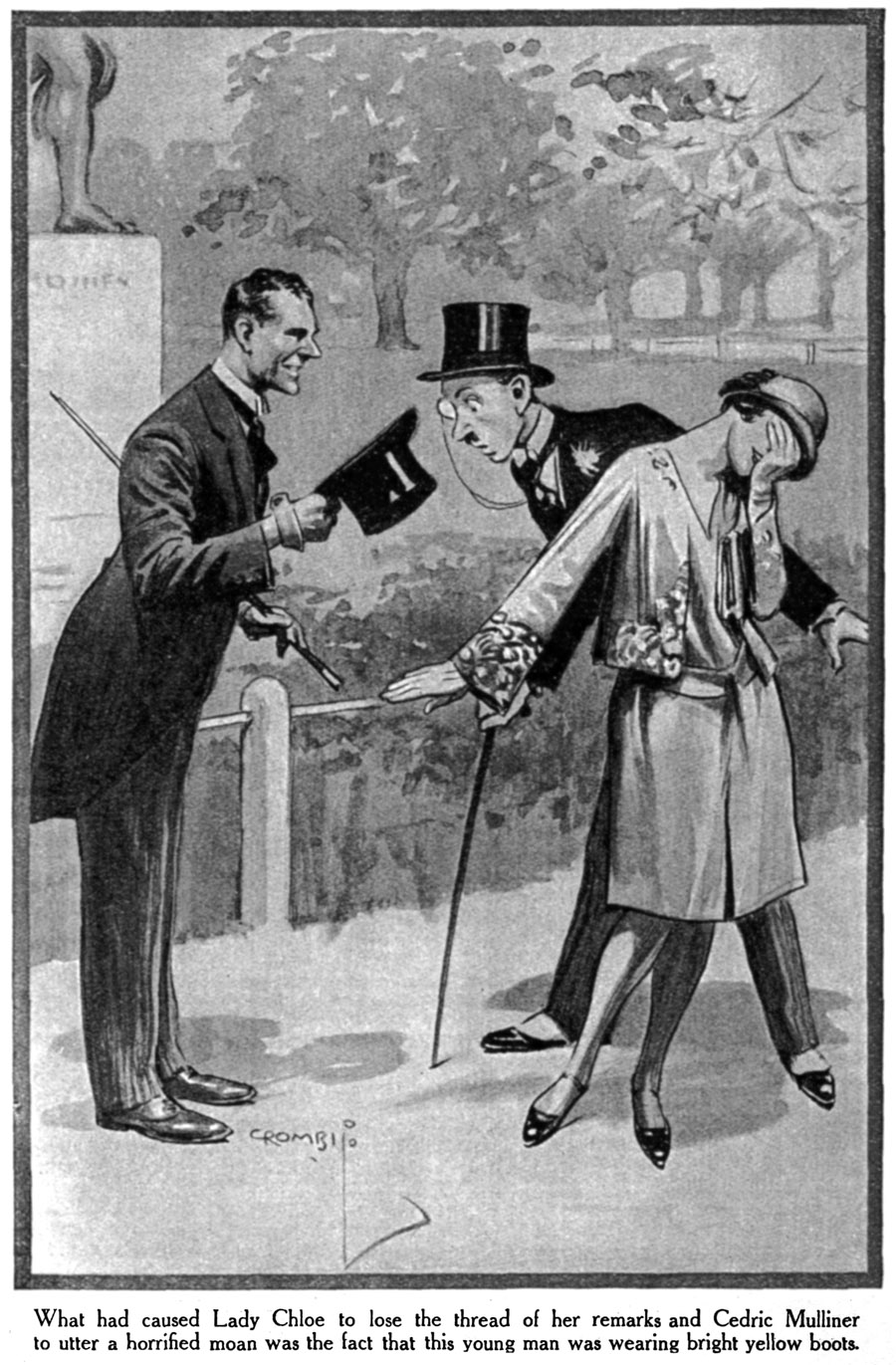 But he was, alas, not one hundred per cent. correct. From neck to ankles beyond criticism, below that he went all to pieces. What had caused Lady Chloe to lose the thread of her remarks and Cedric Mulliner to utter a horrified moan was the fact that this young man was wearing bright yellow boots.