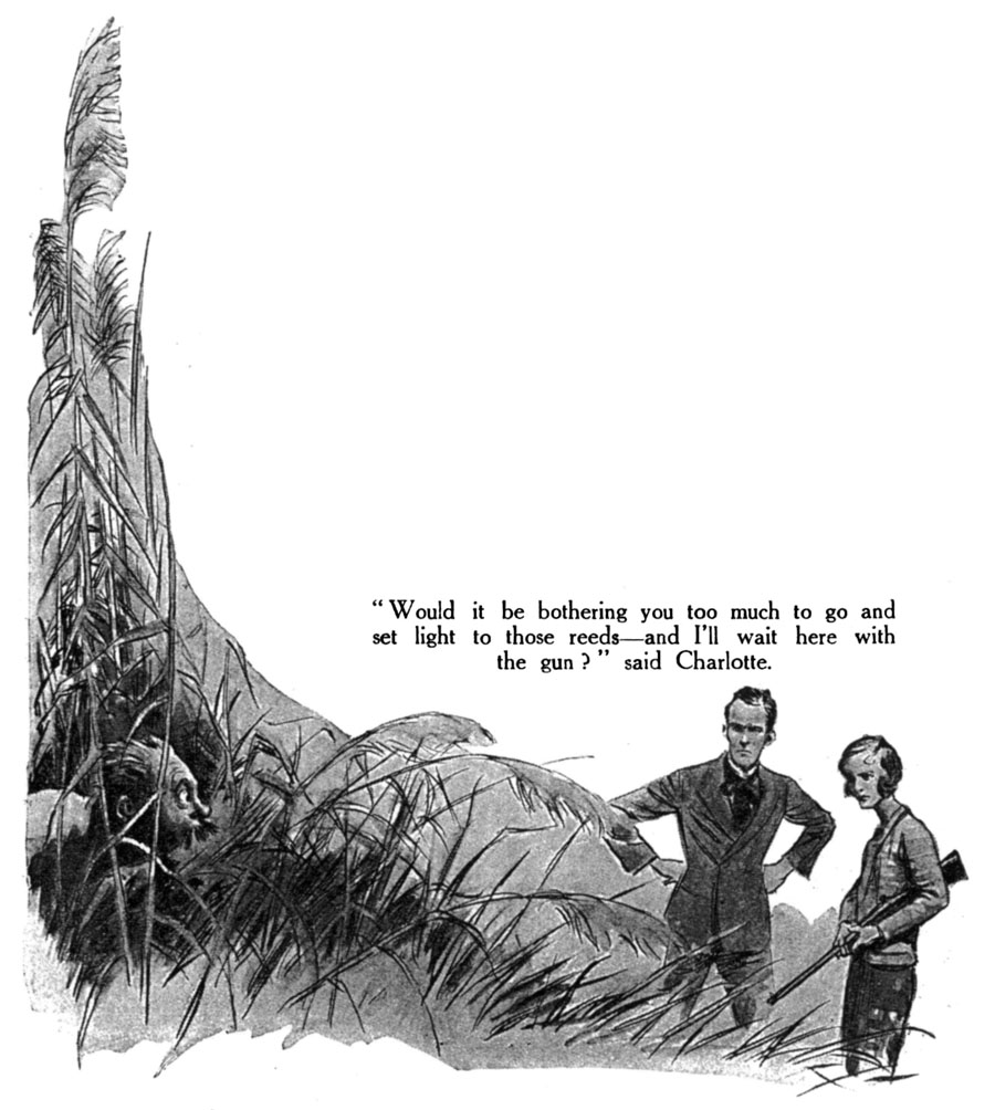 “Then would it be bothering you too much to go and set light to those reeds—about there would be a good place—and I’ll wait here with the gun?”