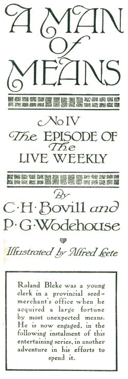 A week later Roland sat in the office of Squibs, reading a letter. It had been sent from No. 18A, Bream’s Buildings, E.C., but, from Roland’s point of view, it might have come direct from Heaven; for its contents, signed by Harrison, Harrison, Harrison, and Harrison, solicitors, were to the effect that a client of theirs had instructed them to approach him with a view to purchasing the paper. He would not find their client disposed to haggle over terms, so, hoped Messrs. Harrison, Harrison, Harrison, and Harrison, in the event of Roland being willing to sell, they could speedily bring matters to a satisfactory conclusion.